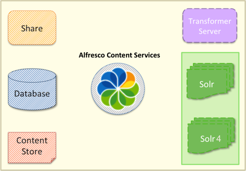 This information gives an overview of the main components of your Alfresco Content Services solution.