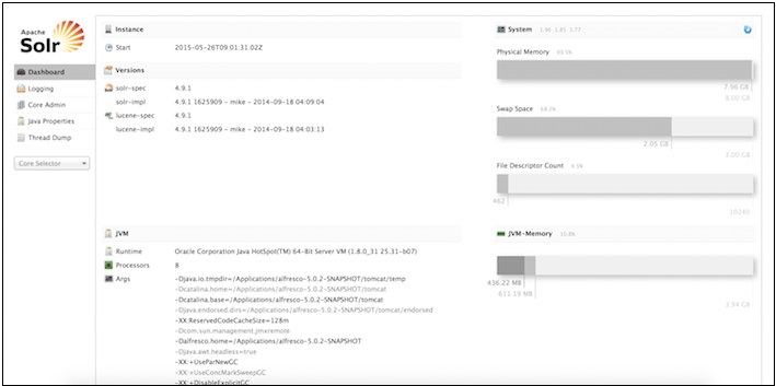 Note: Solr 4 is the default search mechanism for new installations installed with the Setup Wizard. Also, the Solr 4 server is supported only when running in a Tomcat application server. Therefore, if you are running Alfresco Content Services within a different application server and you wish to use Solr 4 search, you must install Tomcat.