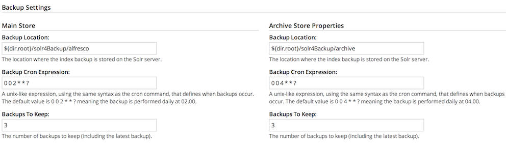 ArchiveStore: used for searching content that has been marked as deleted at alfresco/solr4 within the Solr search server.