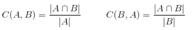 Containment is a related concept but is more about inclusion. For example, many email threads include parts or all of previous messages. Containment is not symmetrical like the measure of similarity above, and is defined as: