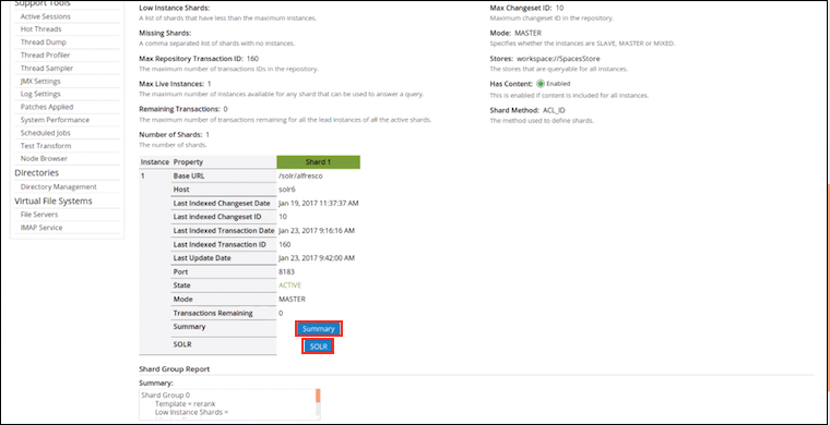- Alfresco Content Services 5.2.x supports Solr 4, Solr 6, and TMDQ.
