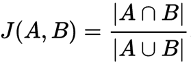 The Jaccard similarity coefficient is a commonly used indicator of the similarity between two sets. For sets A and B it is defined to be the ratio of the amount of common content to the total content of two documents, as defined here: