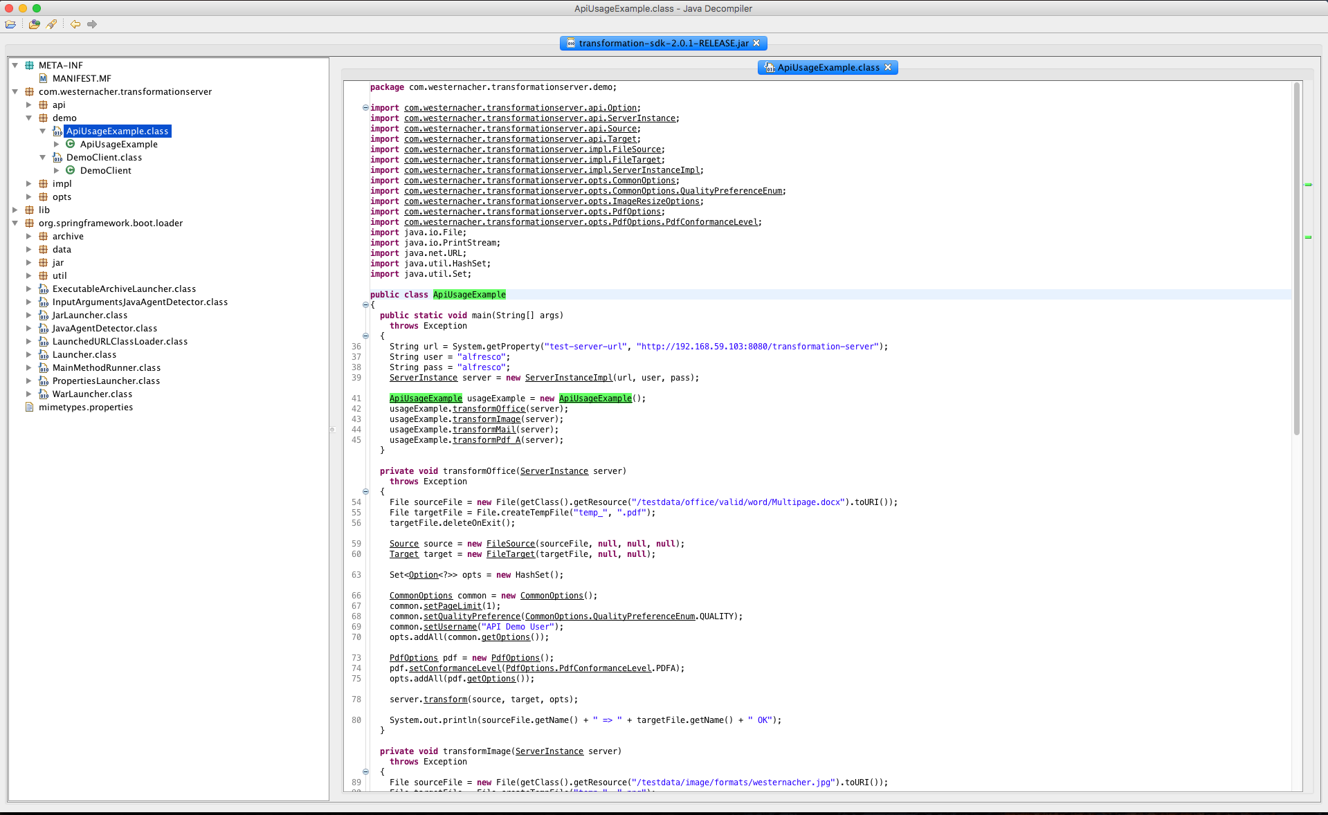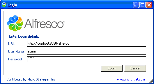 By default, the sample pulls content from the repository located at http://localhost:8080/alfresco, using a user name and password of admin. These values can be supplied using context-param values in the web.xml file, for example: