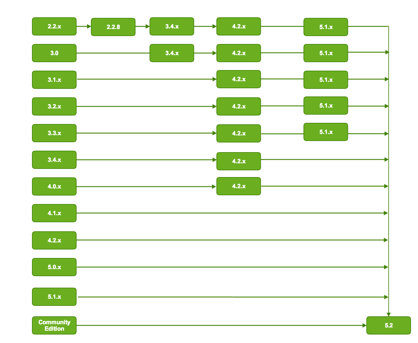 Note: If you are upgrading from an earlier release that is not shown on this diagram, contact Alfresco Support for assistance.
