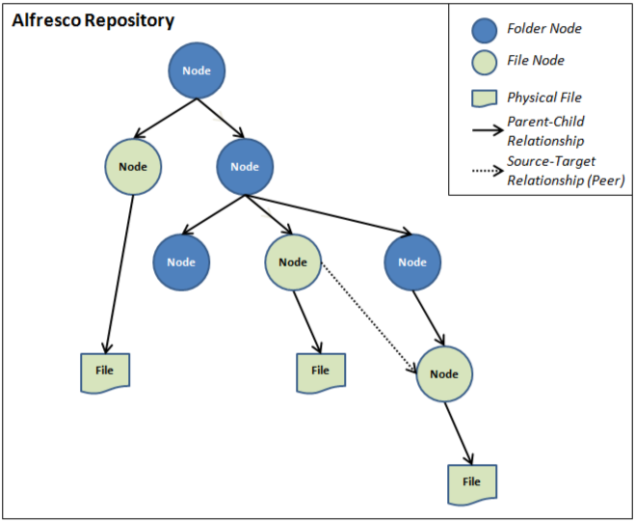 - Aspects: a node can have many aspects applied, such as Versioned, Emailed, Transformed, Classified, Geographic and so on.