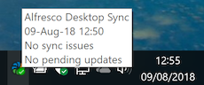 Hover your cursor over the Desktop Sync icon to display sync status information, such as date and time of last sync, sync issues (conflicts), and any pending updates.