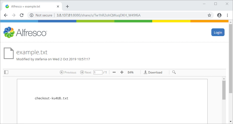icon to copy the link.You can paste it wherever you like, such as an email or document. Here’s a preview of the shared file in Alfresco Share: