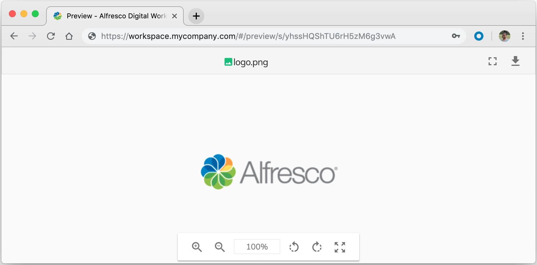 icon to copy the link.You can paste it wherever you like, such as an email or document. Here’s a preview of the shared file in Alfresco Digital Workspace: