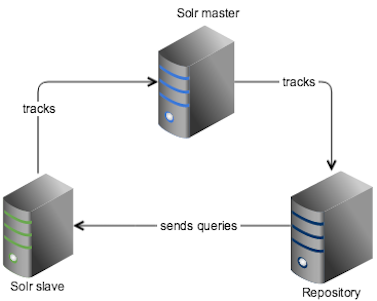 | It is simple to set up. Each Solr node may have the same setup if the queries from Solr to the repository go through a load balancer instead of to a specific repository node. | It is not as simple as the master-master replication. |